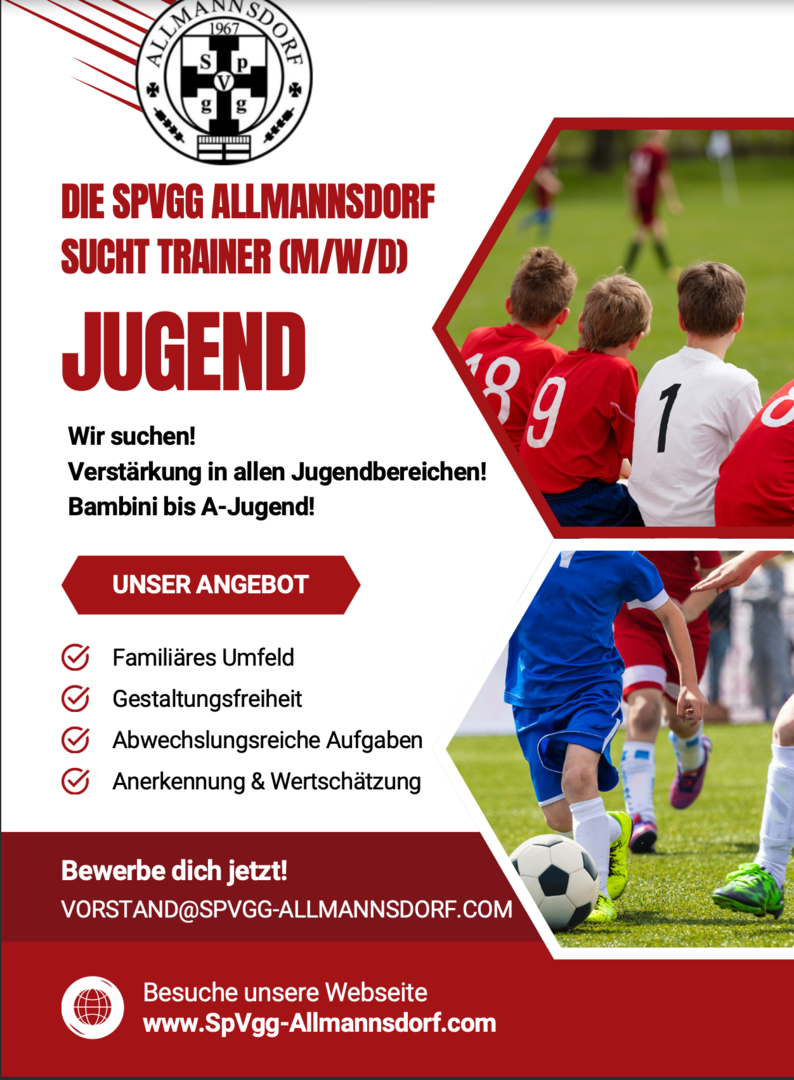 Die SpVgg Allmannsdorf sucht engagierte Trainerinnen und Trainer (m/w/d) für alle Jugendbereiche – von den Bambini bis zur A-Jugend.